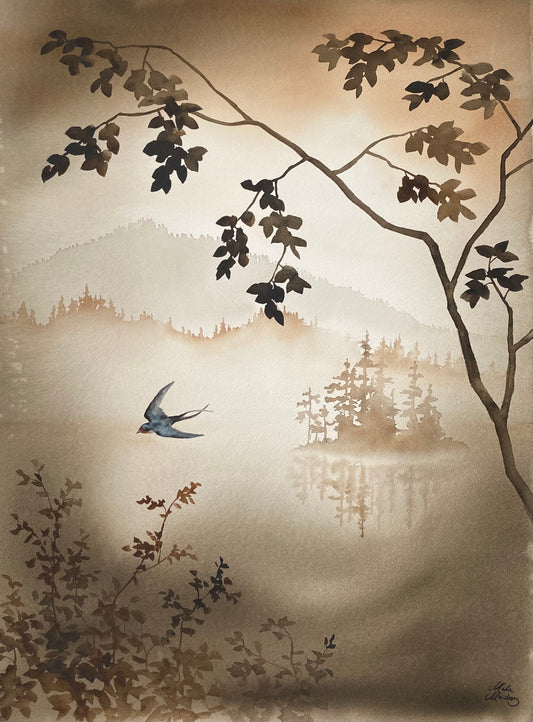 By using the transparency and lightness of watercolour, Malin Mossberg succeeds in capturing moments of beauty and calm. Her work reflects a humble and honest interpretation of the magnificence of nature and the subtle presence of the human in its surroundings. Malin's art invites the viewer to a world of reflection and discovery, where the mysteries of nature are revealed in a unique and artistic way.