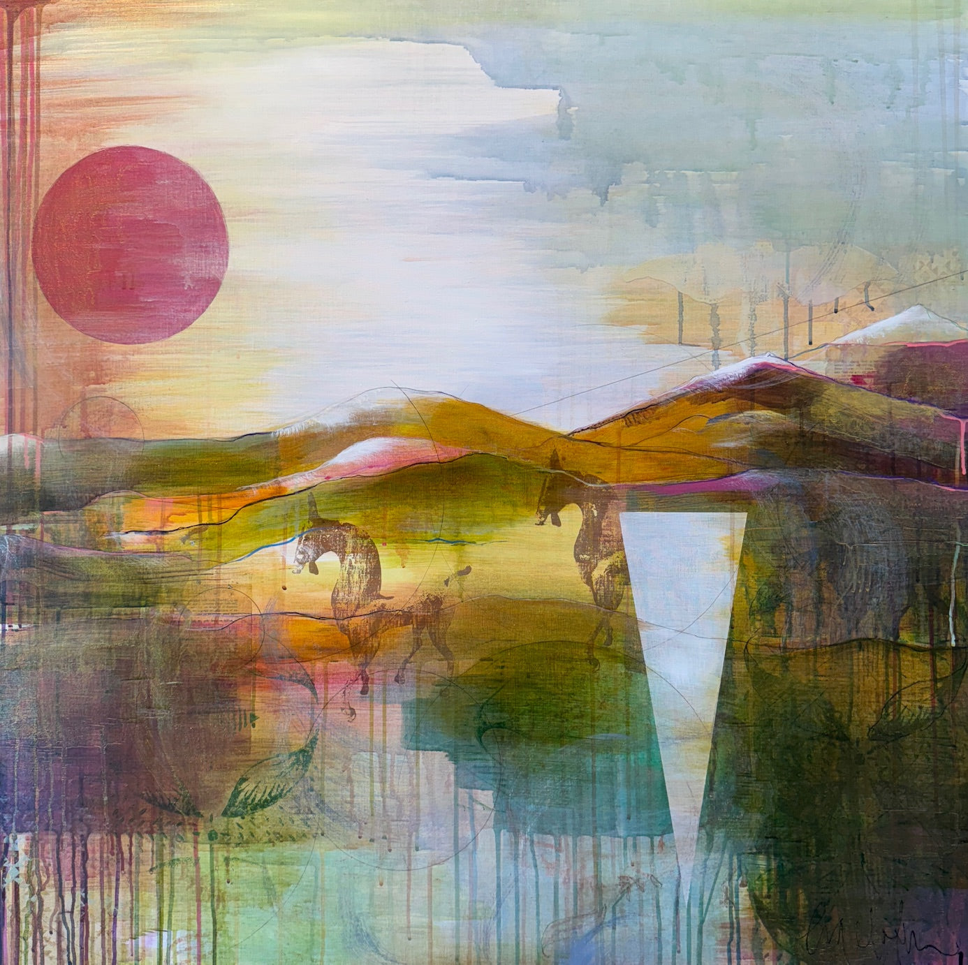 ÖVRIG INFO: BLANDTEKNIK PÅ LINNEDUK, INRAMAD